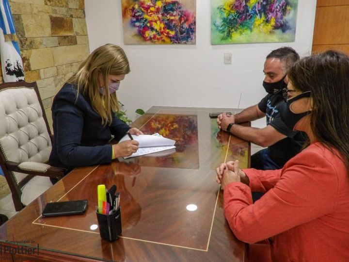 La intendenta de la ciudad Gloria Ruíz recibió a los referentes de la colectividad boliviana “Juana Azurduy” para concretar la firma de renovación del comodato del espacio que utilizan en la chanca Gómez ubicada en calle Pellegrini de la ciudad.
